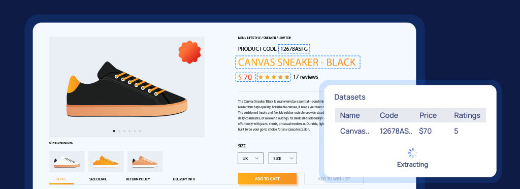 Product Detail Page (PDP) data extraction is the process of collecting every key detail from competitor product pages, including prices, discounts, stock status, variations, shipping options, delivery estimates, ratings, and promotional messages.